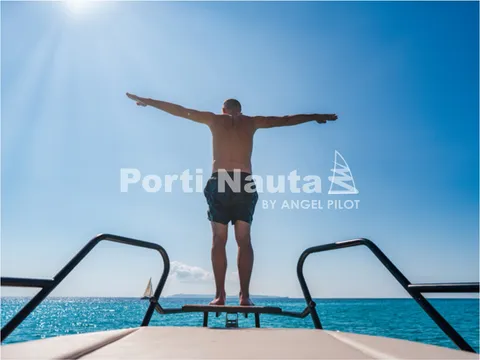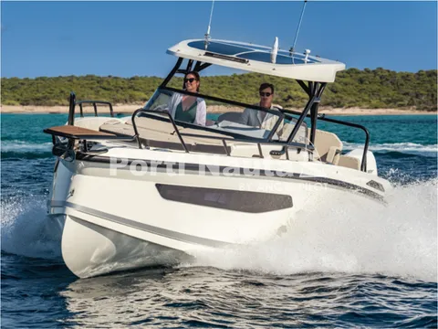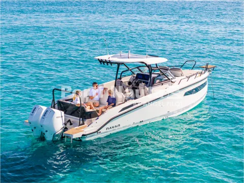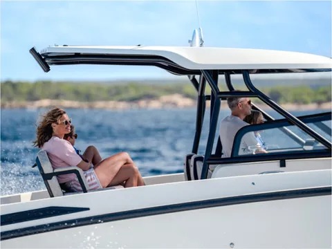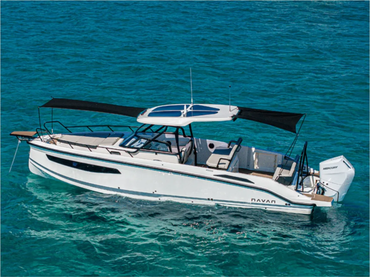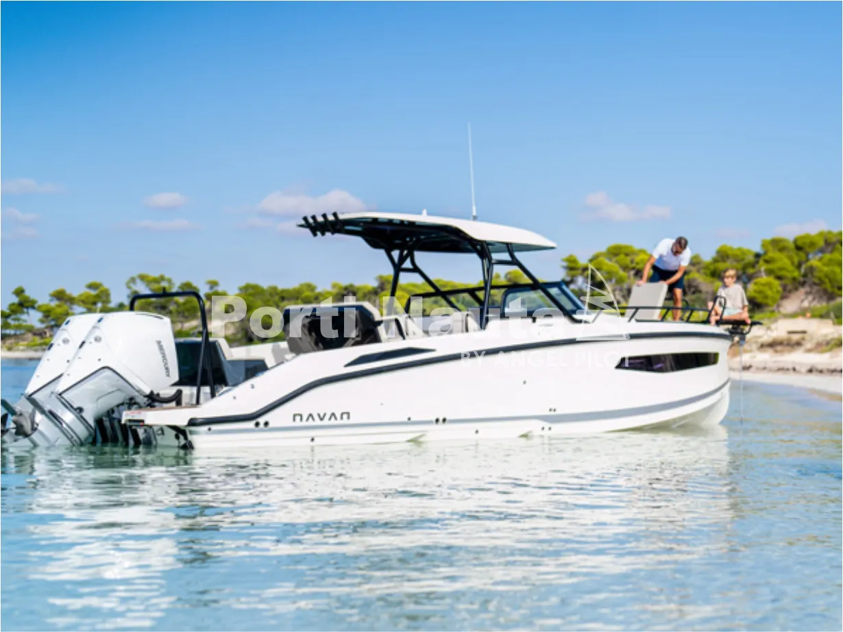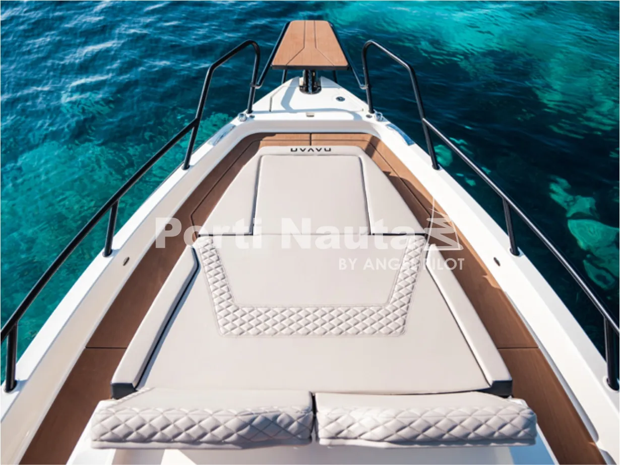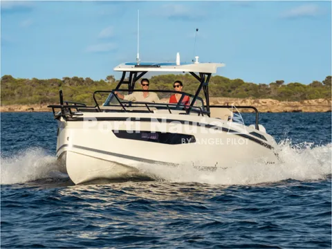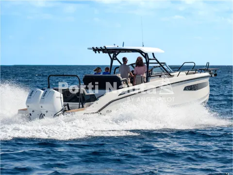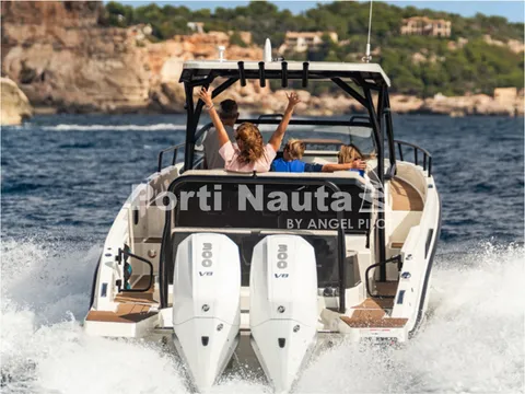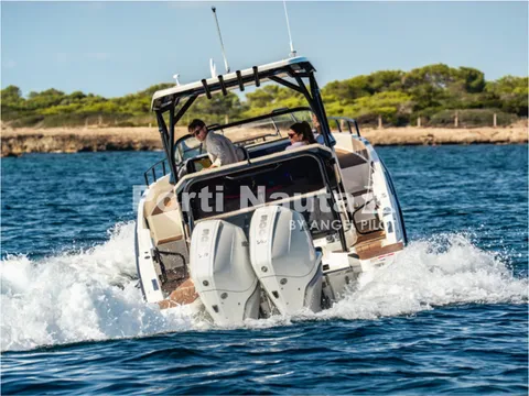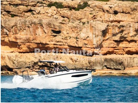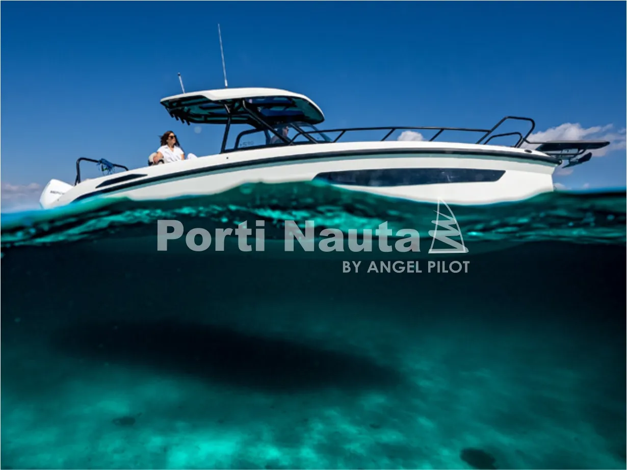 Verificar equipamento standard no inventário técnico. Edição SMART (Tomada de corrente, dupla arca térmica 20L no módulo de entretenimento, duche com sistema de água quente, cortinas de cabine, mesa em teka real e kit de fundeio) - Casco de cor (Hard-Top cinza, casco cinza e fundo cinza Telegray) - Hard-Top cinza - Módulo de entretenimento exterior com lavatório com torneira e grill eléctrico (apenas com tomada de corrente) - Guincho eléctrico de proa - Cobertura de consola, assentos e módulo - Montagem classe 4 inc. cabos, pré-filtros bat - Kit comandos e instrumentos Mercury.