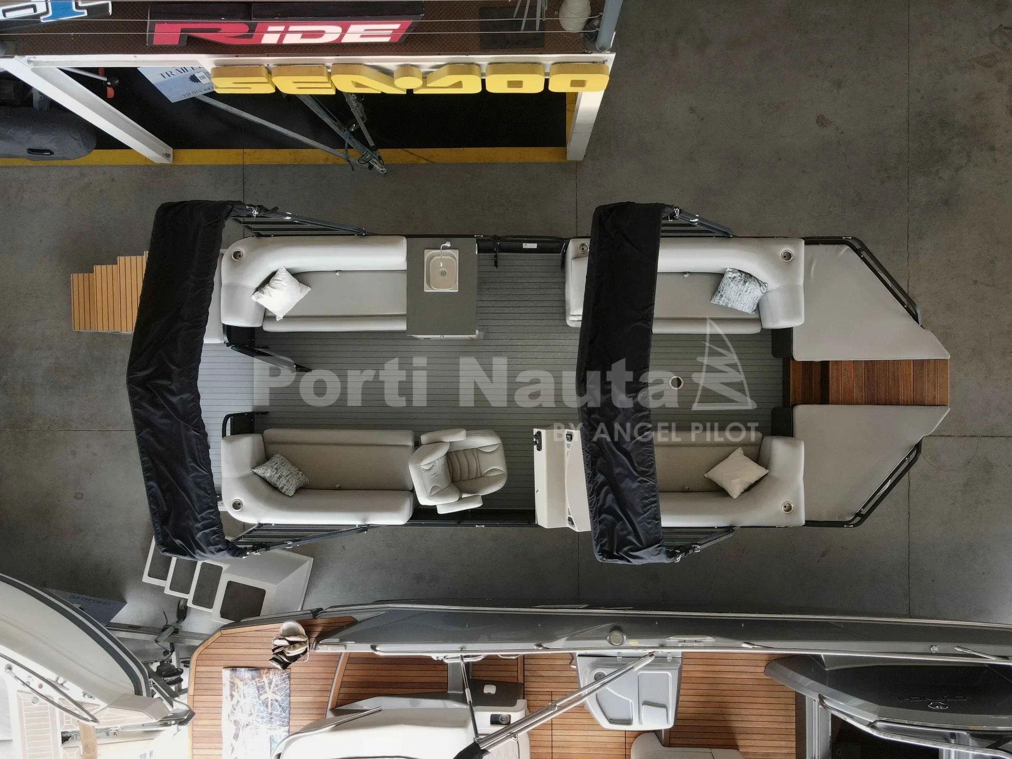 bar – Sink + 45-litre water tank – Exterior LED lights – Copy of CE certificate - Fitting class 5 including battery cables and pre-filter - Yamaha